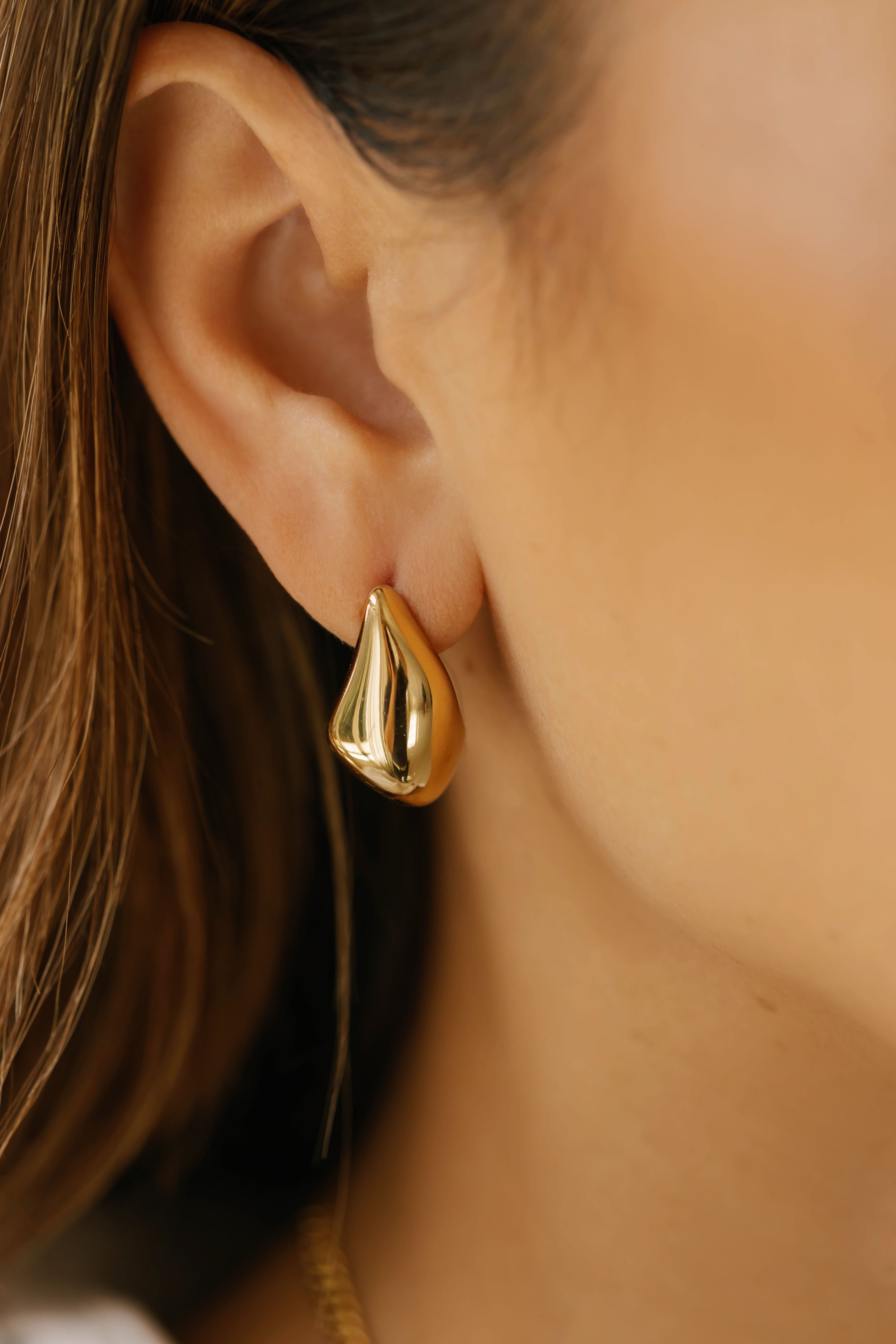 Elevate your everyday look with these sculptural Molten Gold Drop Earrings. Featuring a soft, organic teardrop shape and a high-polish finish, these earrings add a modern yet timeless touch to any outfit. Their fluid, mirror-like surface catches the light beautifully—perfect for both casual wear and special occasions.